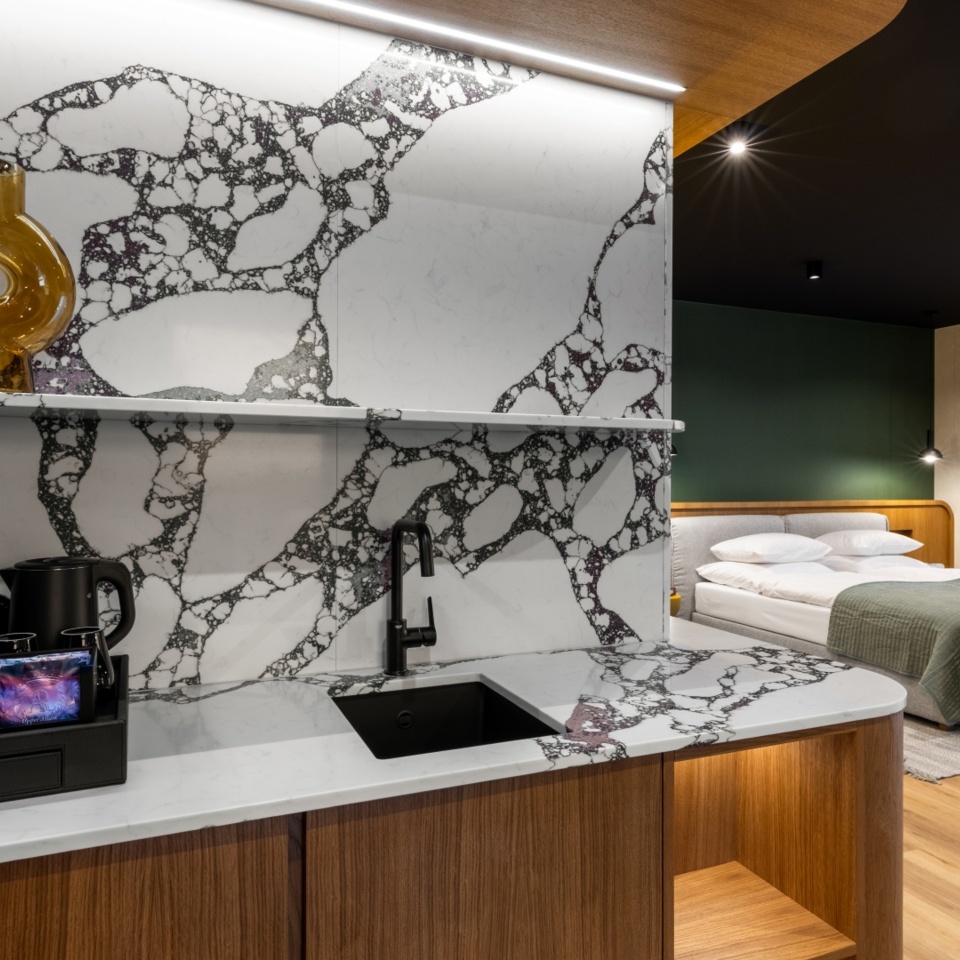 W Hotelu Kraft powstała kameralna przestrzeń, w której rodzice mogą spokojnie nakarmić lub przewinąć dziecko – nie przypadkowy kącik, ale osobny pokój stworzony z myślą o komforcie i intymności, której próżno szukać w innych hotelach. Wygodne miejsce do siedzenia, przewijak i ciepłe oświetlenie pozwalają na chwilę wyciszenia w przyjaznym otoczeniu. To rozwiązanie, które pokazuje, że troska o najmłodszych może iść w parze z elegancją i dbałością o detale.