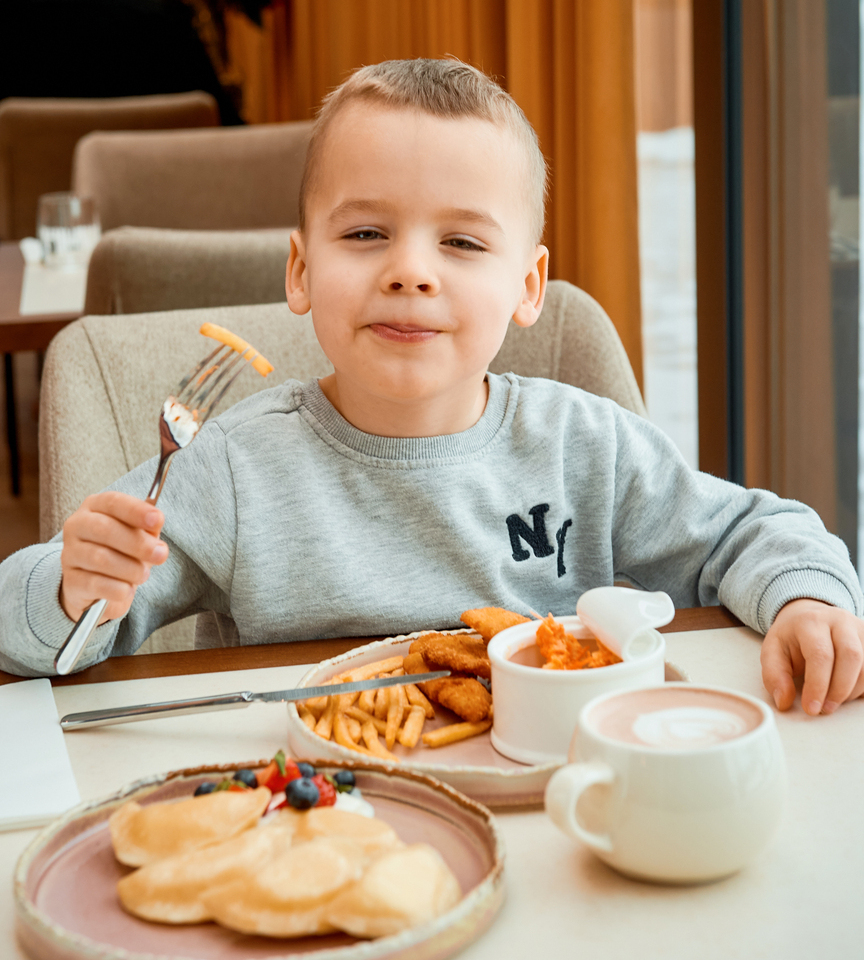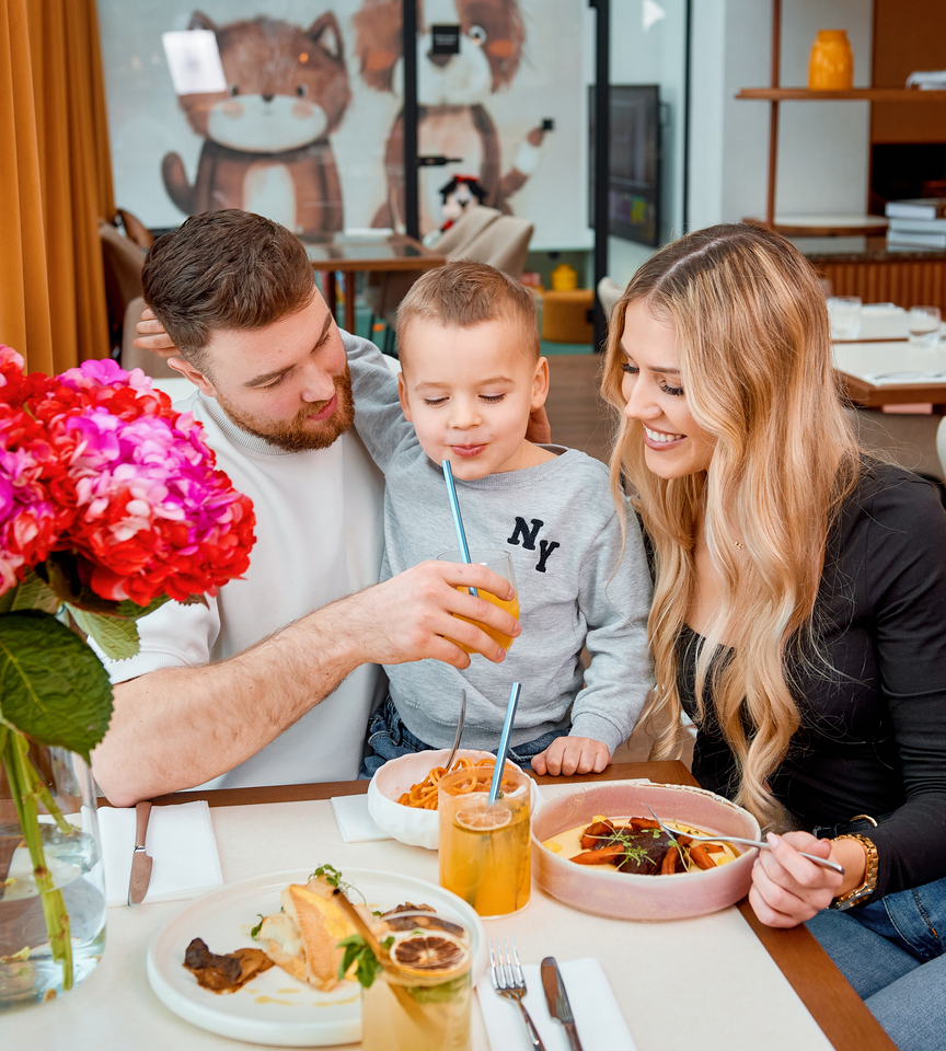 Hotel Kraft to przyjazna przestrzeń, w której dzieci mogą bawić się bezpiecznie, a rodzice – odpoczywać z poczuciem spokoju. Na zewnątrz czeka kolorowy plac zabaw w otoczeniu zieleni, a tuż przy restauracji znajduje się kącik zabaw, dzięki któremu wspólny posiłek staje się przyjemnością dla całej rodziny. Całość tworzy przestrzeń, która sprzyja wspólnemu odpoczynkowi i chwilom spędzanym w rodzinnym gronie.